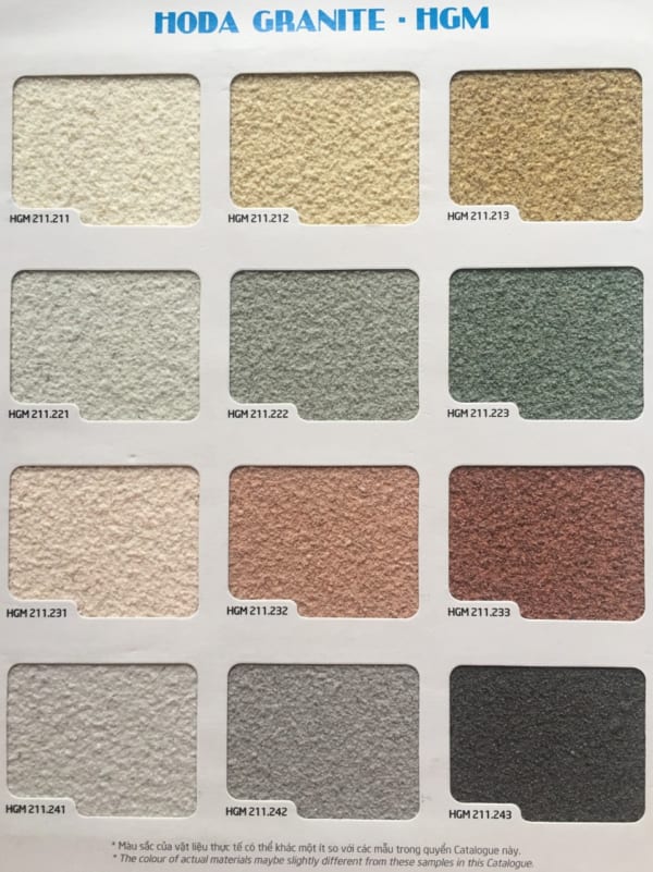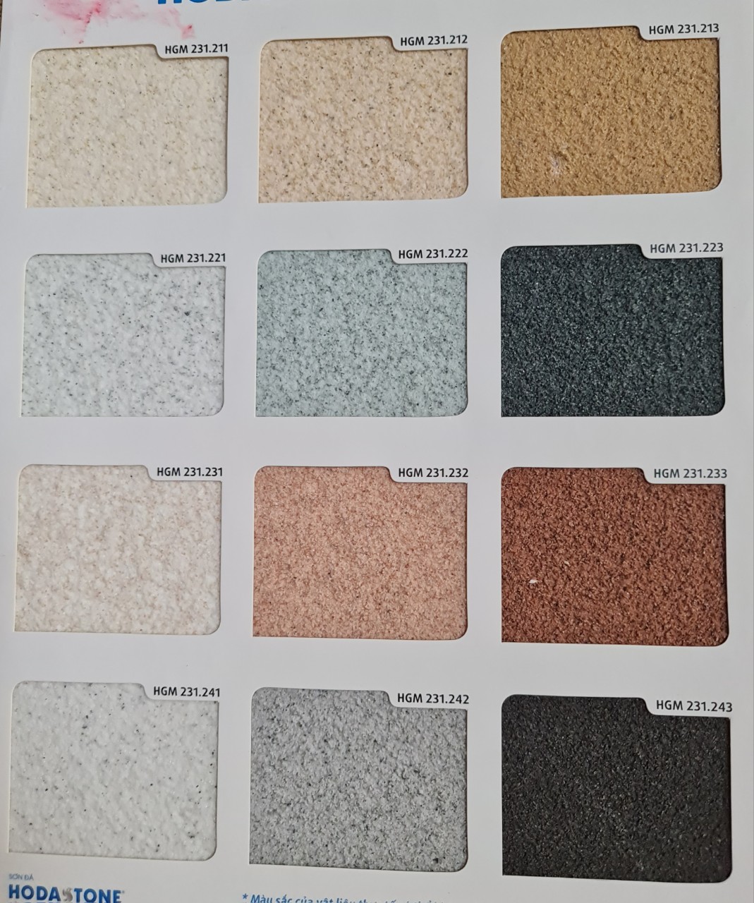 – Những dáng vẻ của sơn đá Hoda Granite phụ thuộc kích cở của đầu vòi phun, áp lực hơi, và khoảng cách từ sung phun đến bề mặt kiến trúc.