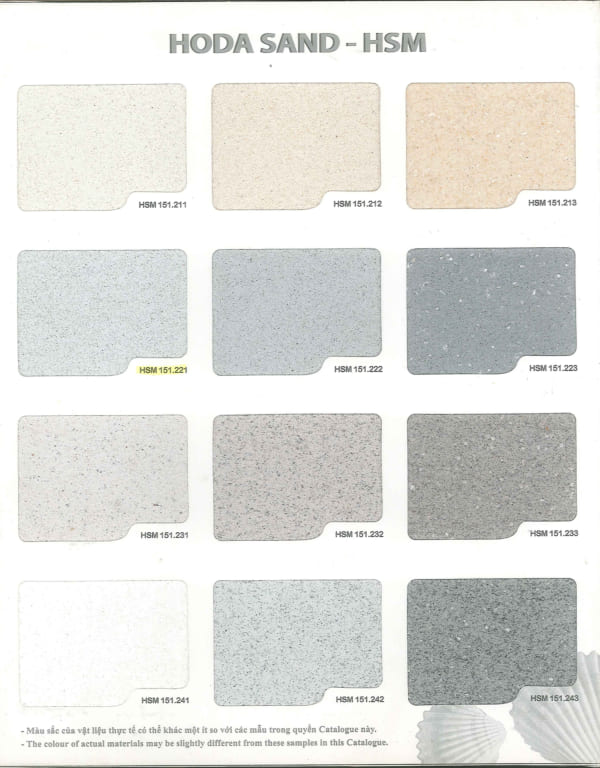 – Những dáng vẻ của sơn đá Hoda Sand phụ thuộc kích cở của đầu vòi phun, áp lực hơi, và khoảng cách từ sung phun đến bề mặt kiến trúc.