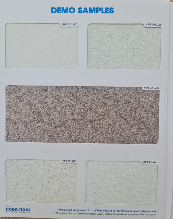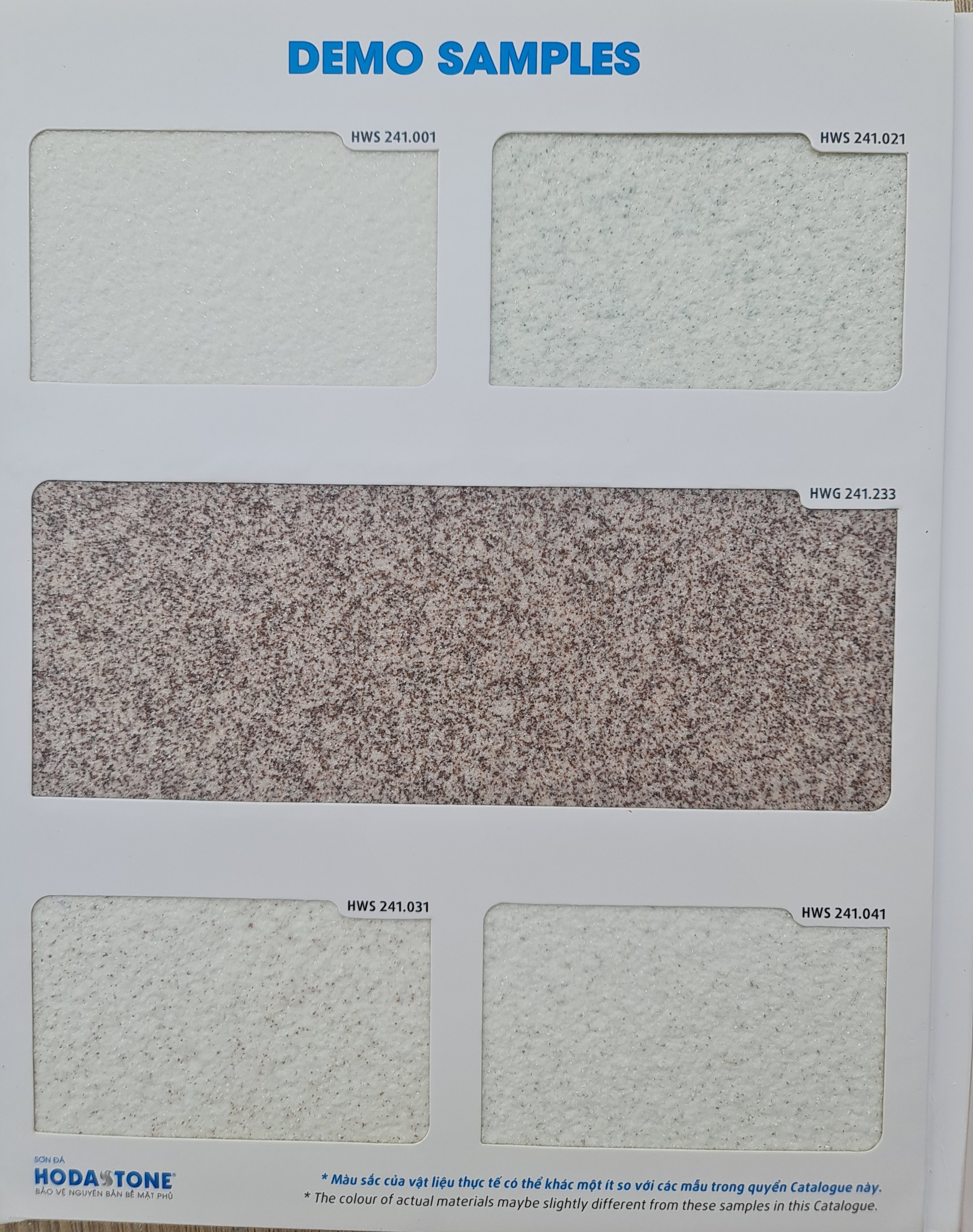 Những dáng vẻ của sơn đá Hoda Walling Sand phụ thuộc kích cỡ của đầu vòi phun, áp lực hơi và khoảng cách từ súng phun đến bề mặt kiến trúc.
